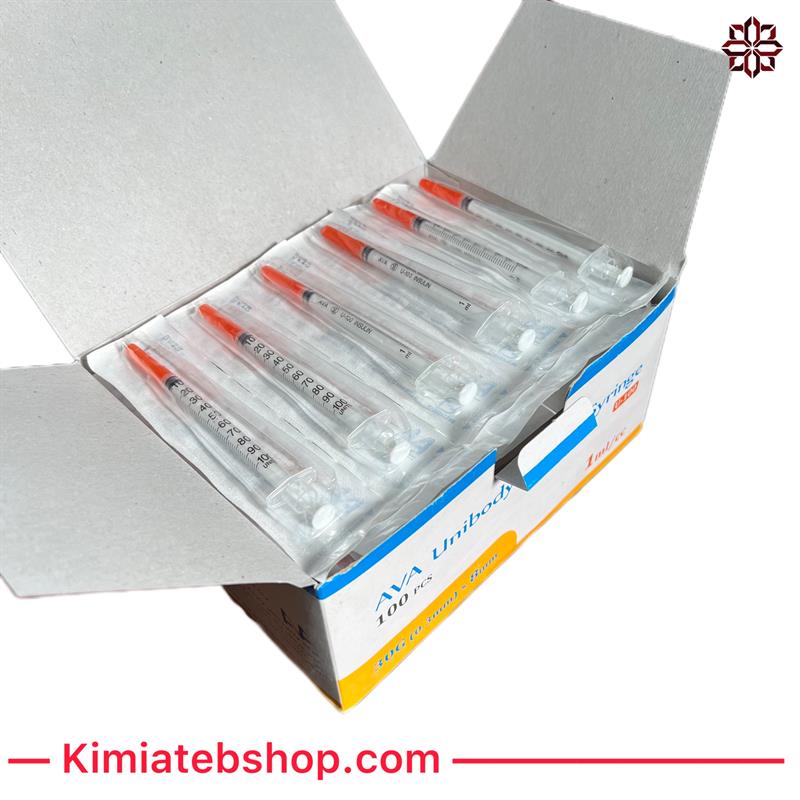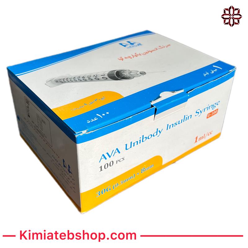 سرنگ انسولین یکپارچه آوا با گیج 30 (طول 8 میلیمتر) در بسته های 100 عددی ارئه می گردد.